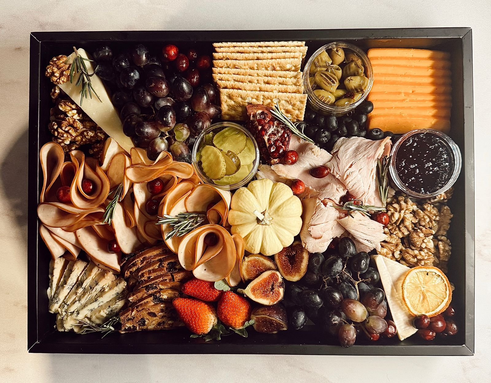 Indulge in a carefully curated artisanal board featuring a delightful mix of cheeses, premium cold cuts, fresh fruits, nuts, and seasonal accents. Perfectly balanced with sweet, savory, and creamy flavors, this board is ideal for gatherings, celebrations, or as a charming centerpiece for any occasion.