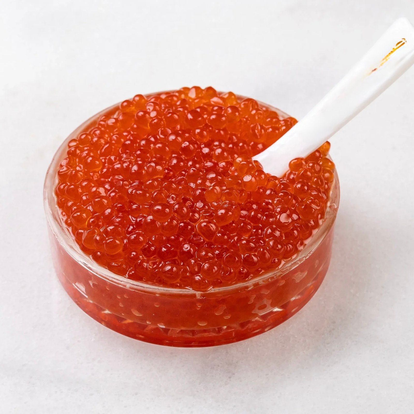 A delicacy from the Pacific, this Pink Salmon Roe is prized for its bright orange pearls (3–5mm) and creamy, delicate flavor without bitterness. Harvested from the pristine waters of the Sea of Okhotsk and Primorye, it delivers purity and freshness in every bite.